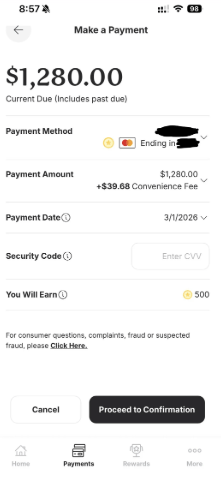 She was trying to make a payment on her account and when she went to pay it online, the system slapped her with a $39.68 "convenience fee" just to process the transaction.